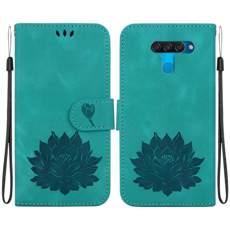 For LG K50 / Q60 Lotus Embossed Leather Phone Case(Green)