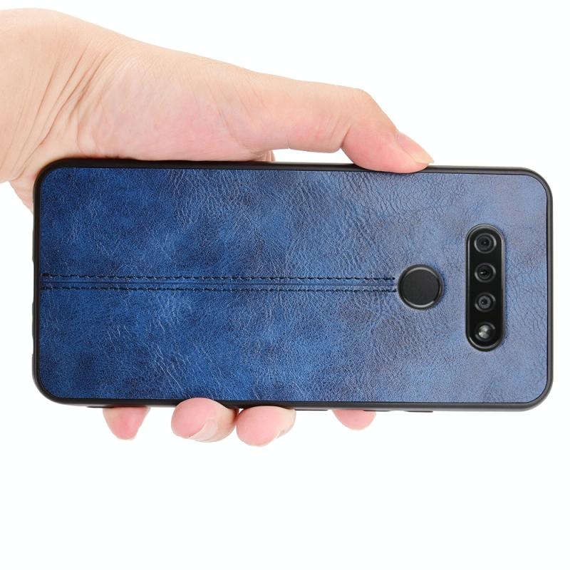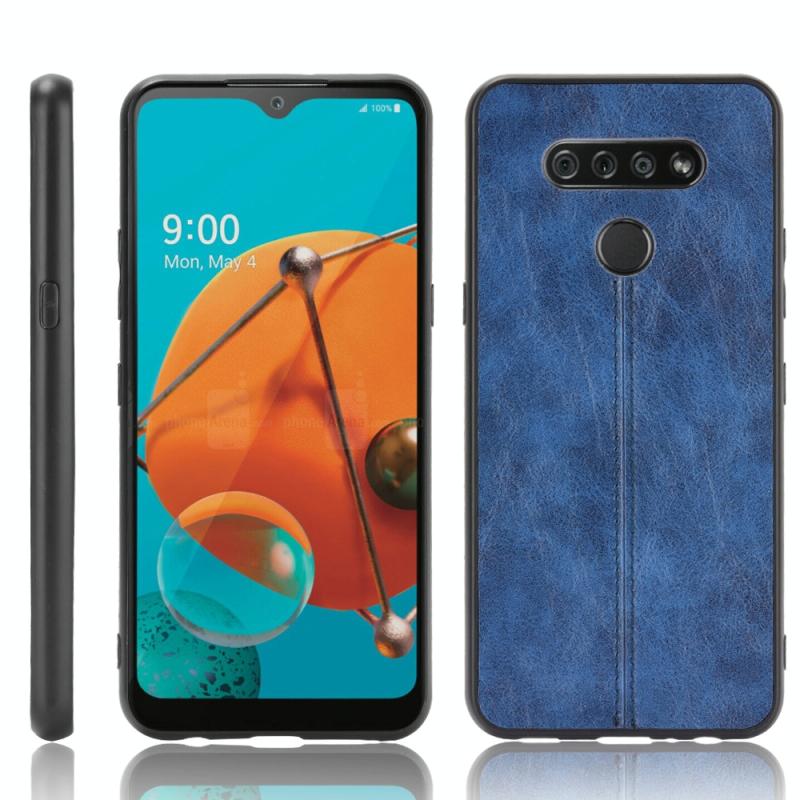 For LG K51 Shockproof Sewing Cow Pattern Skin PC + PU + TPU Case(Blue)