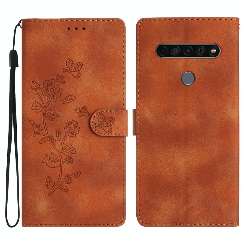 For LG K51S Flower Butterfly Embossing Pattern Leather Phone Case(Brown)