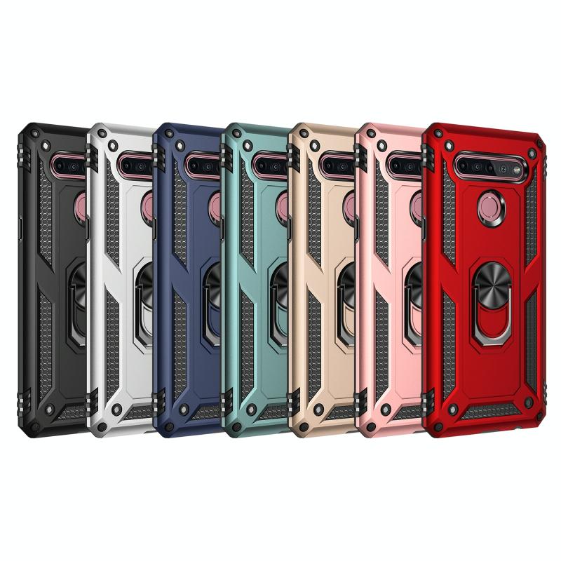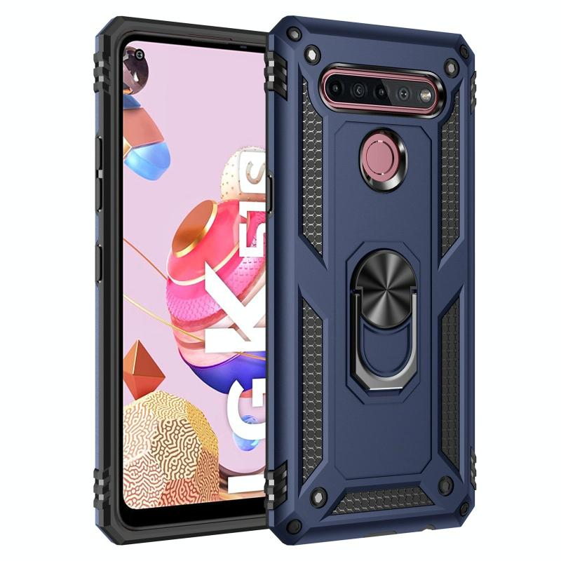 For LG K51S Shockproof TPU + PC Protective Case with 360 Degree Rotating Holder(Blue)