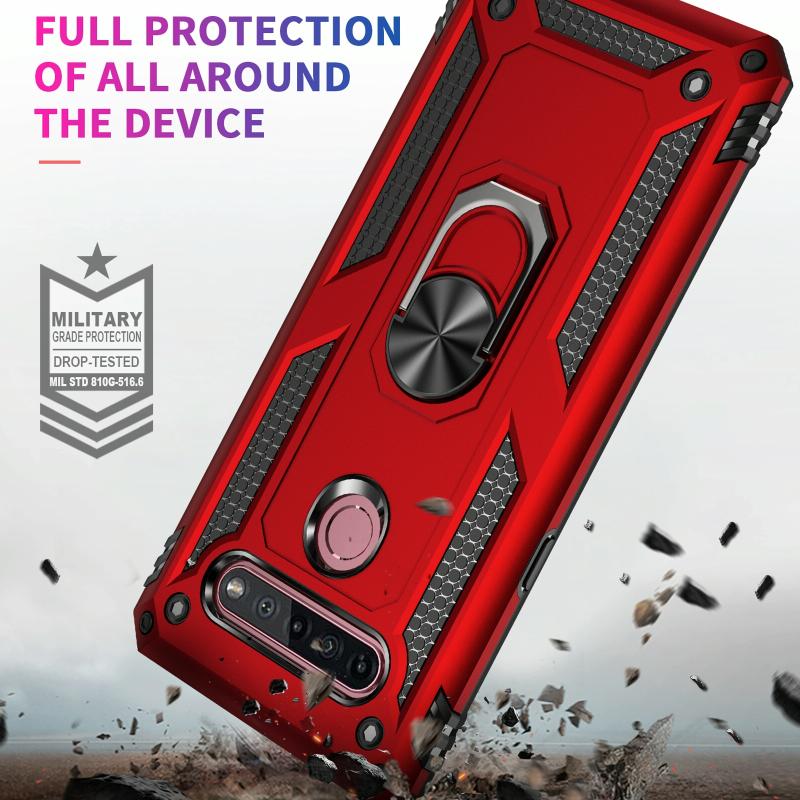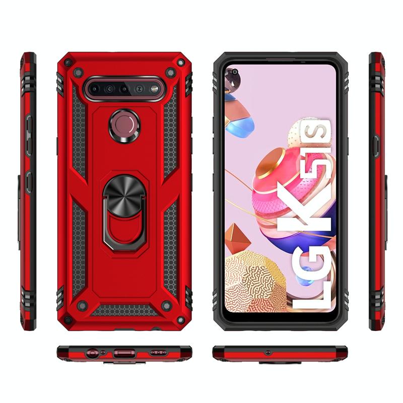 For LG K51S Shockproof TPU + PC Protective Case with 360 Degree Rotating Holder(Rose Gold)
