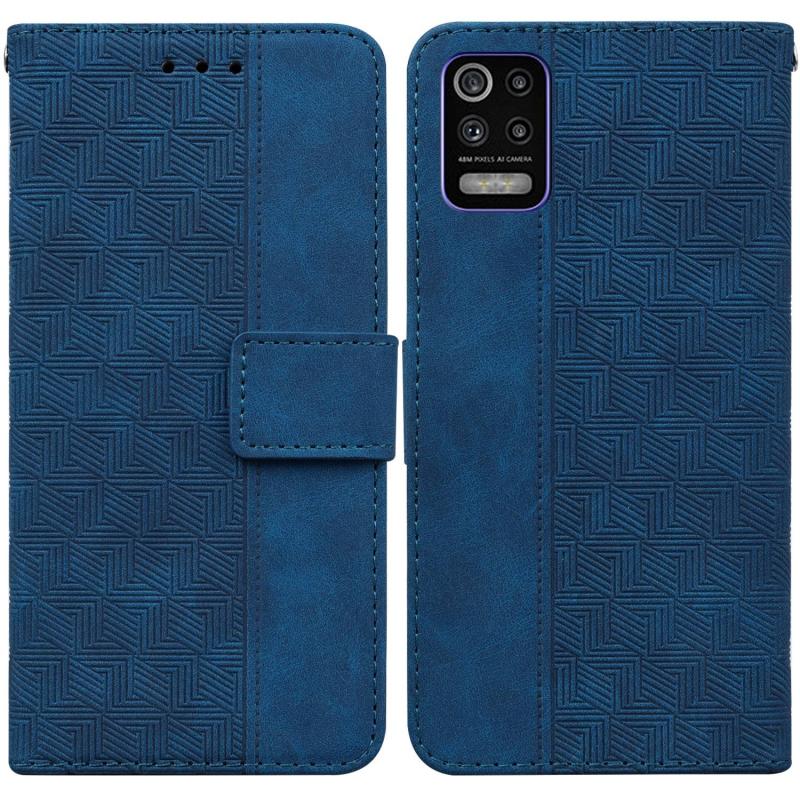 For LG K52 / K62 / Q52 Geometric Embossed Leather Phone Case(Blue)