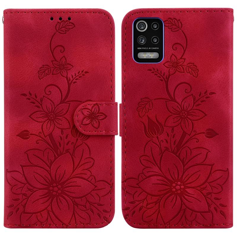 For LG K52 / K62 / Q52 Lily Embossed Leather Phone Case(Red)
