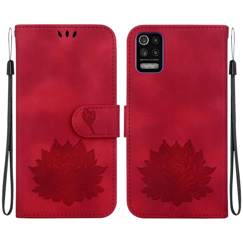 For LG K52 / K62 / Q52 Lotus Embossed Leather Phone Case(Red)
