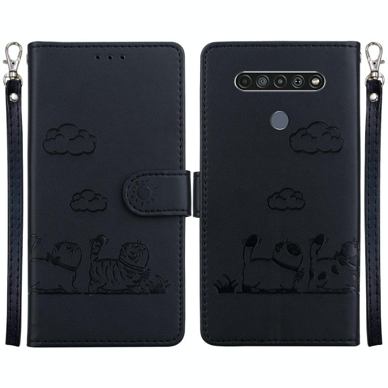 For LG K61 Cute Cats RFID Leather Phone Case(Black)