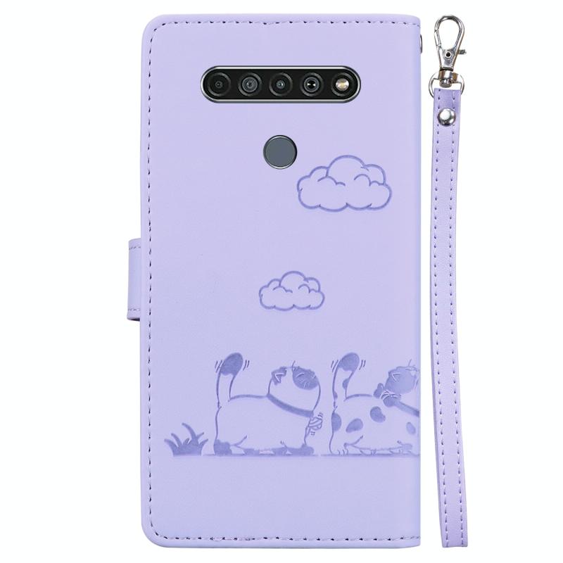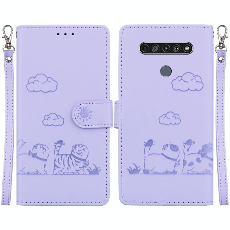 For LG K61 Cute Cats RFID Leather Phone Case(Purple)