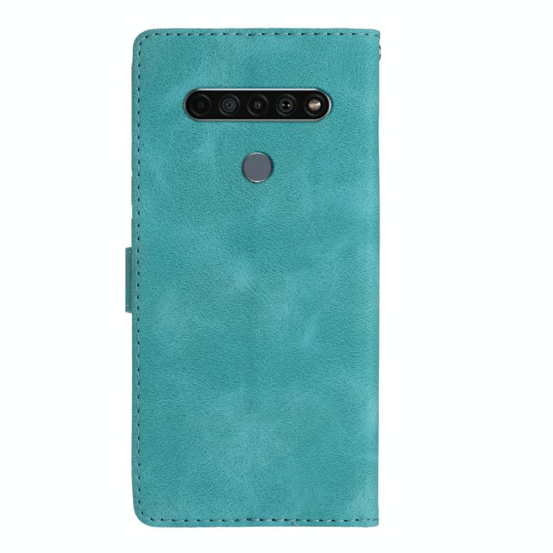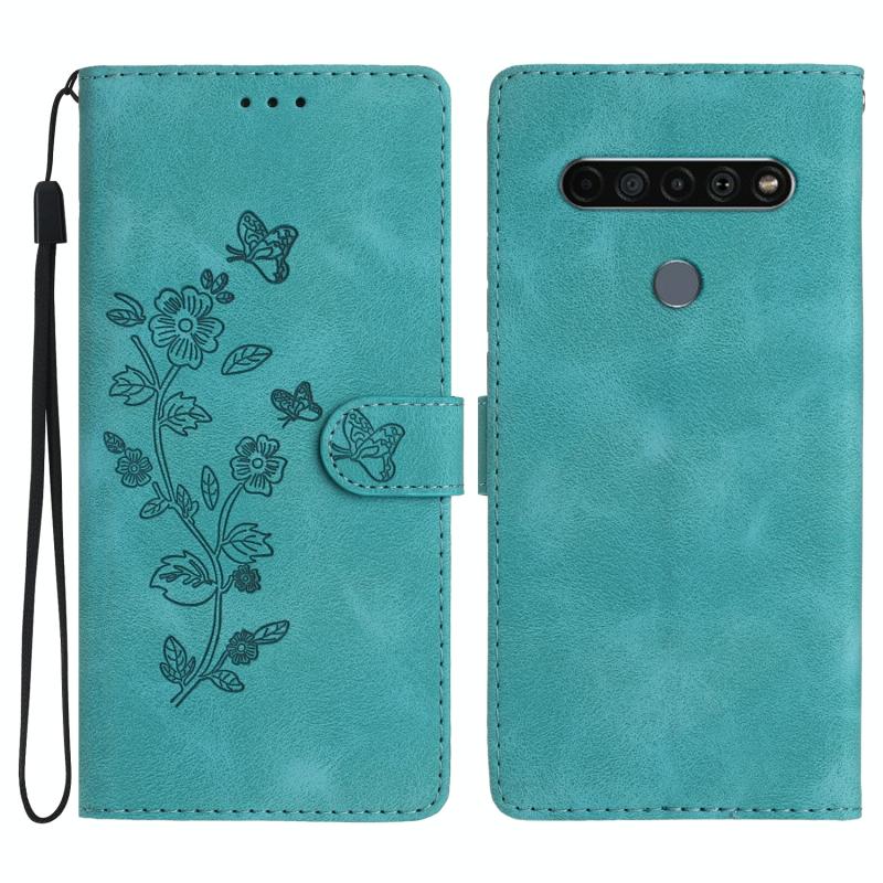 For LG K61 Flower Butterfly Embossing Pattern Leather Phone Case(Sky Blue)