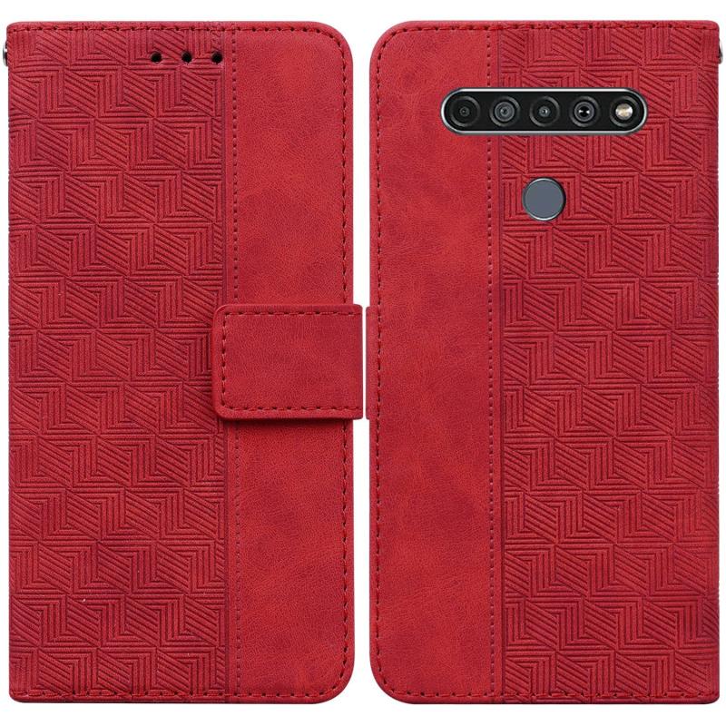 For LG K61 Geometric Embossed Leather Phone Case(Red)