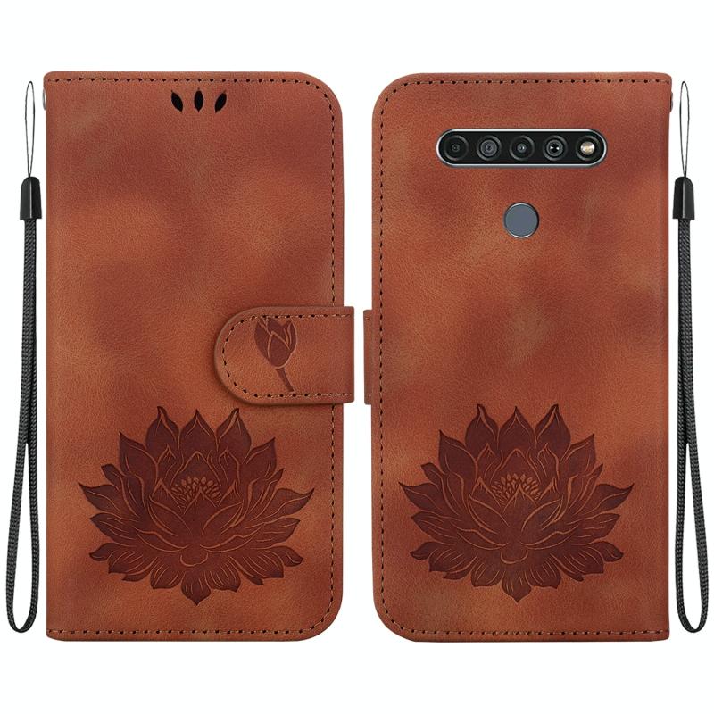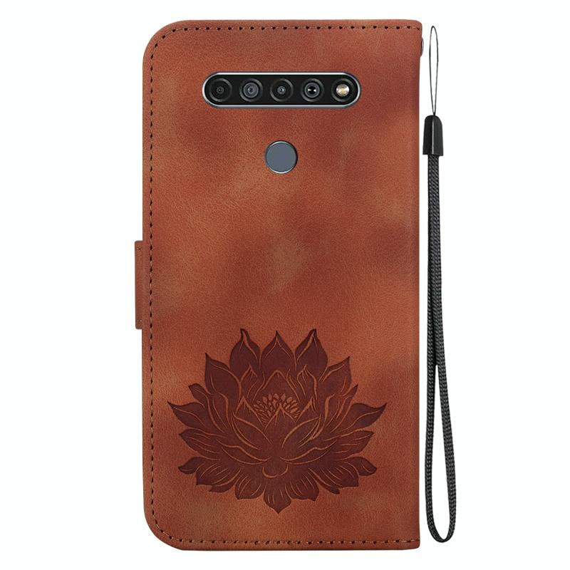 For LG K61 Lotus Embossed Leather Phone Case(Brown)