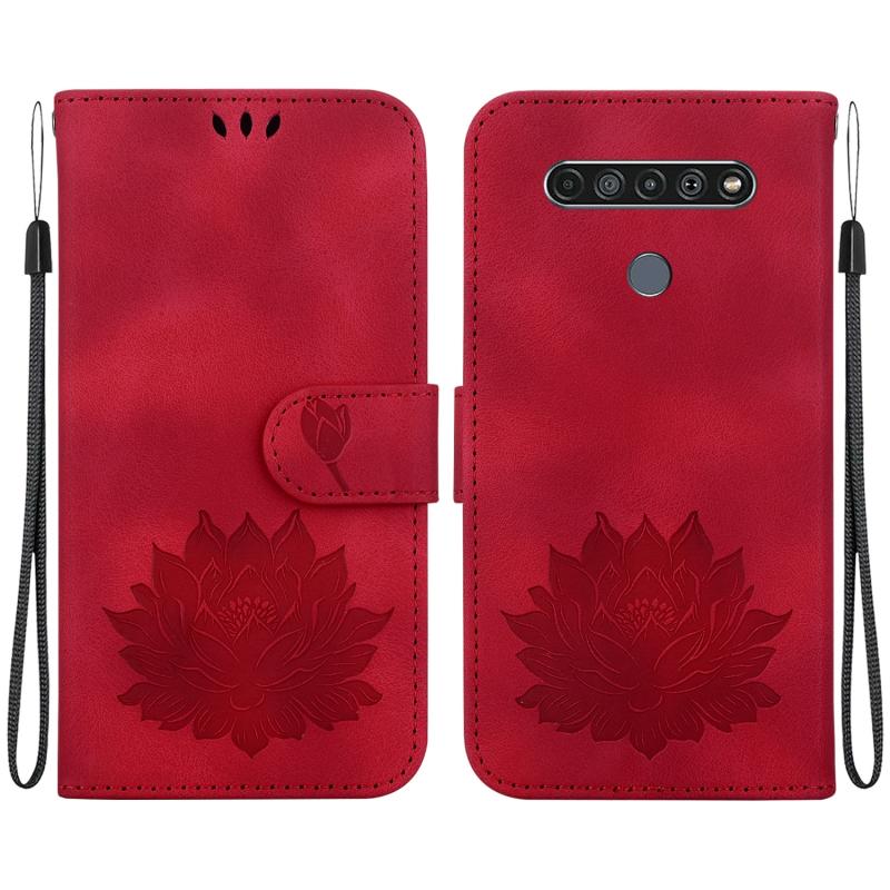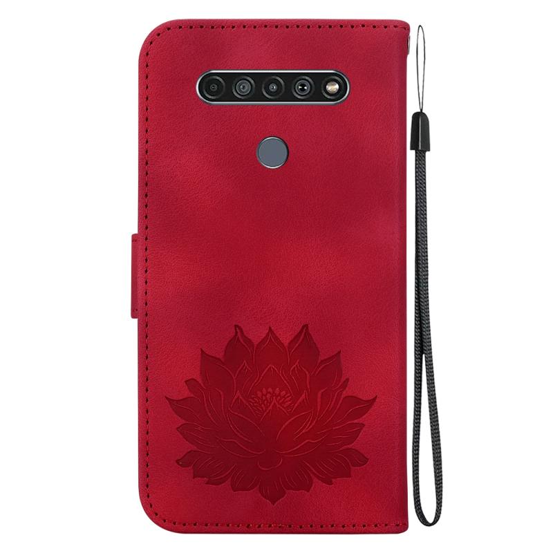 For LG K61 Lotus Embossed Leather Phone Case(Red)