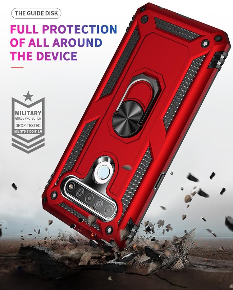 For LG Q61 Shockproof TPU + PC Protective Case with 360 Degree Rotating Holder(Blue)