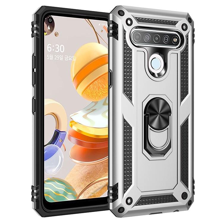 For LG Q61 Shockproof TPU + PC Protective Case with 360 Degree Rotating Holder(Silver)