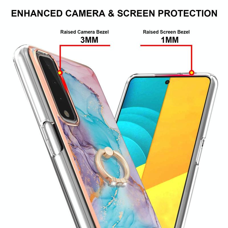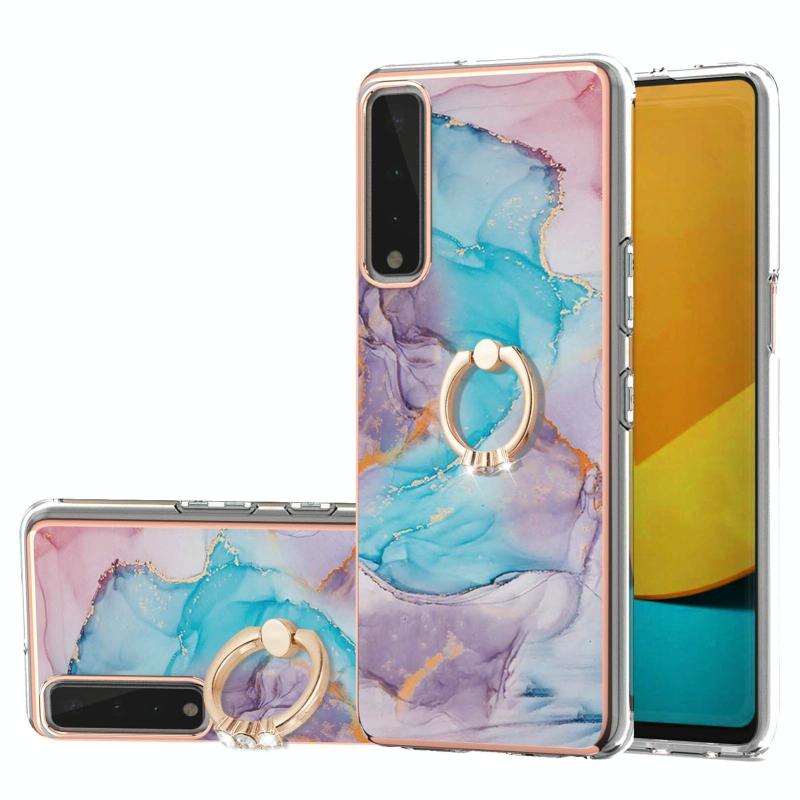 For LG Stylo 7 5G Electroplating Pattern IMD TPU Shockproof Case with Rhinestone Ring Holder(Milky Way Blue Marble)