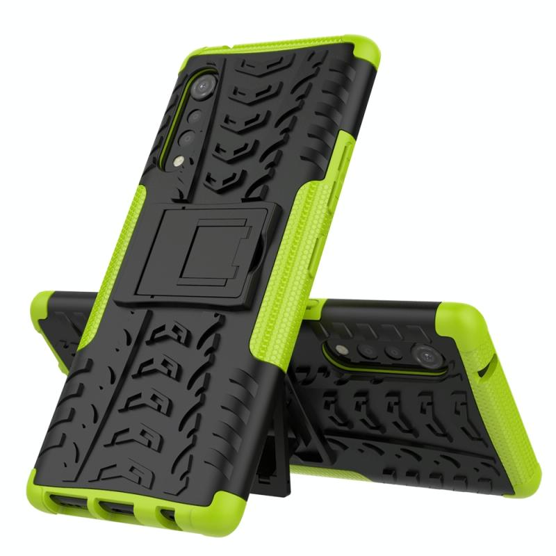 For LG Velvet Tire Texture Shockproof TPU+PC Protective Case with Holder(Green)