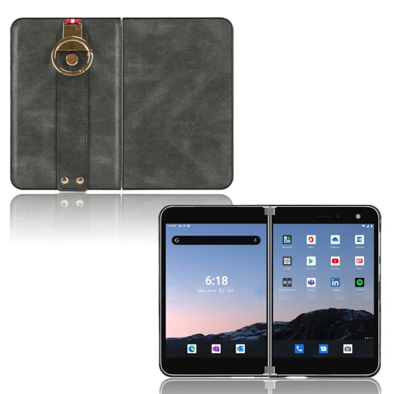 For Microsoft Surface Duo Wristband Leather Back Phone Case(Green)