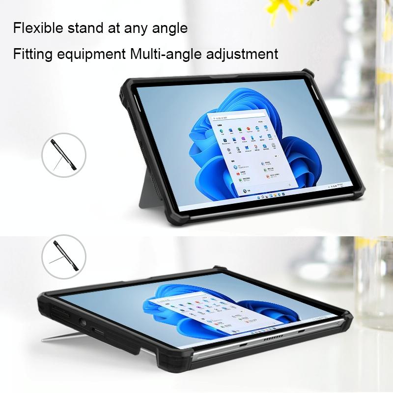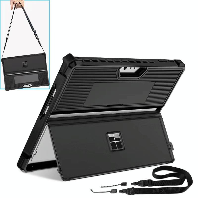 For Microsoft Surface Pro 9 Striped Hollow Tablet Case with Holder Cover and Shoulder Strap(Black)