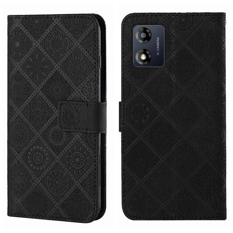 For Motorola Moto E13 Ethnic Style Embossed Pattern Leather Phone Case(Black)