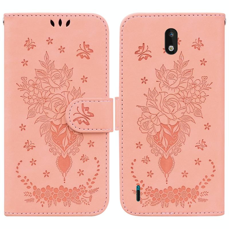For Nokia 1.3 Butterfly Rose Embossed Leather Phone Case(Pink)