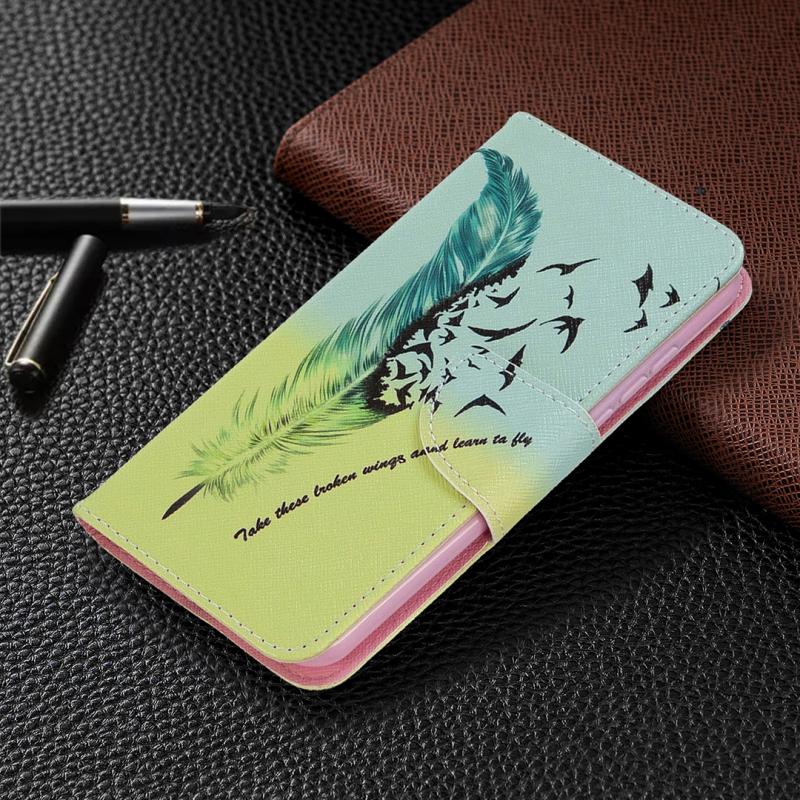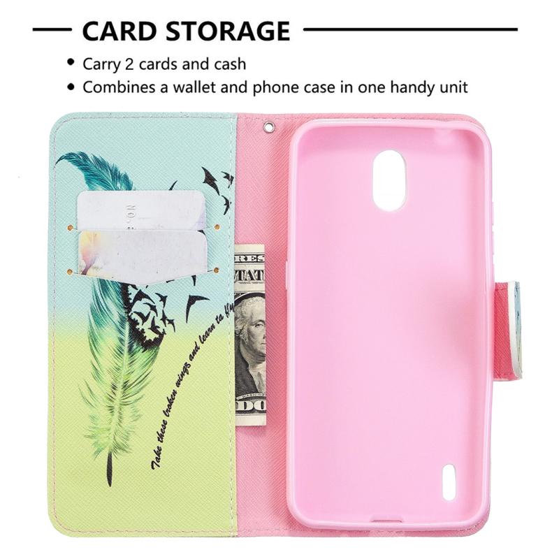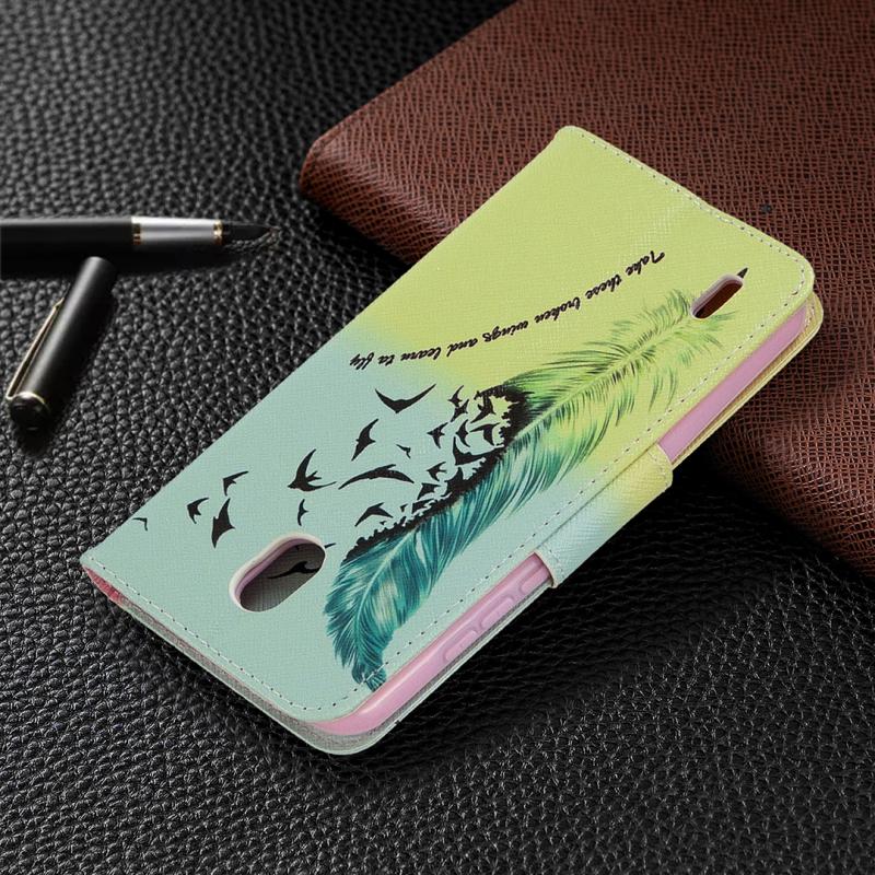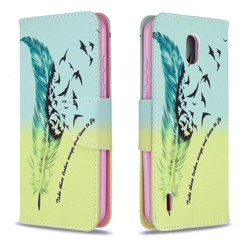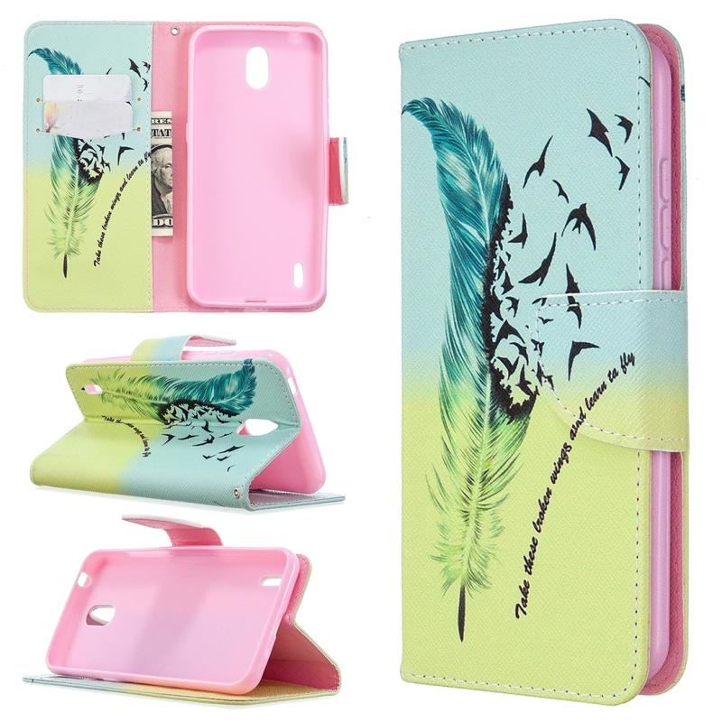 For Nokia 1.3 Colored Drawing Pattern Horizontal Flip Leather Case with Holder & Card Slots & Wallet(Feather)