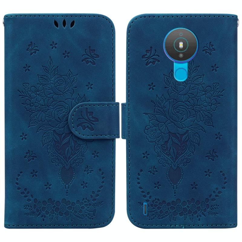 For Nokia 1.4 Butterfly Rose Embossed Leather Phone Case(Blue)