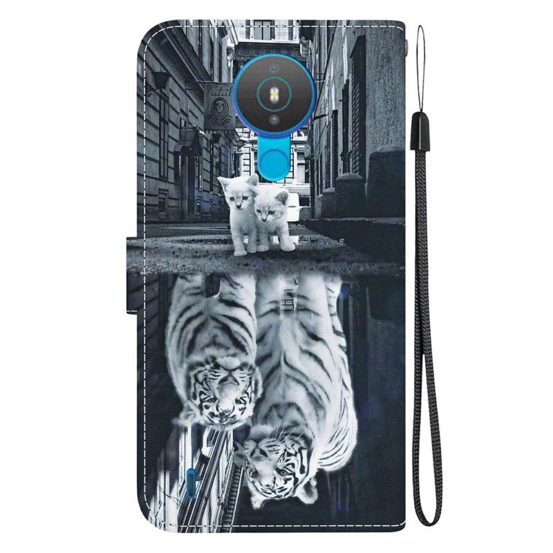 For Nokia 1.4 Crystal Texture Colored Drawing Leather Phone Case(Cat Tiger Reflection)