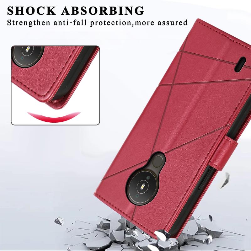 For Nokia 1.4 PU Genuine Leather Texture Embossed Line Phone Case(Red)