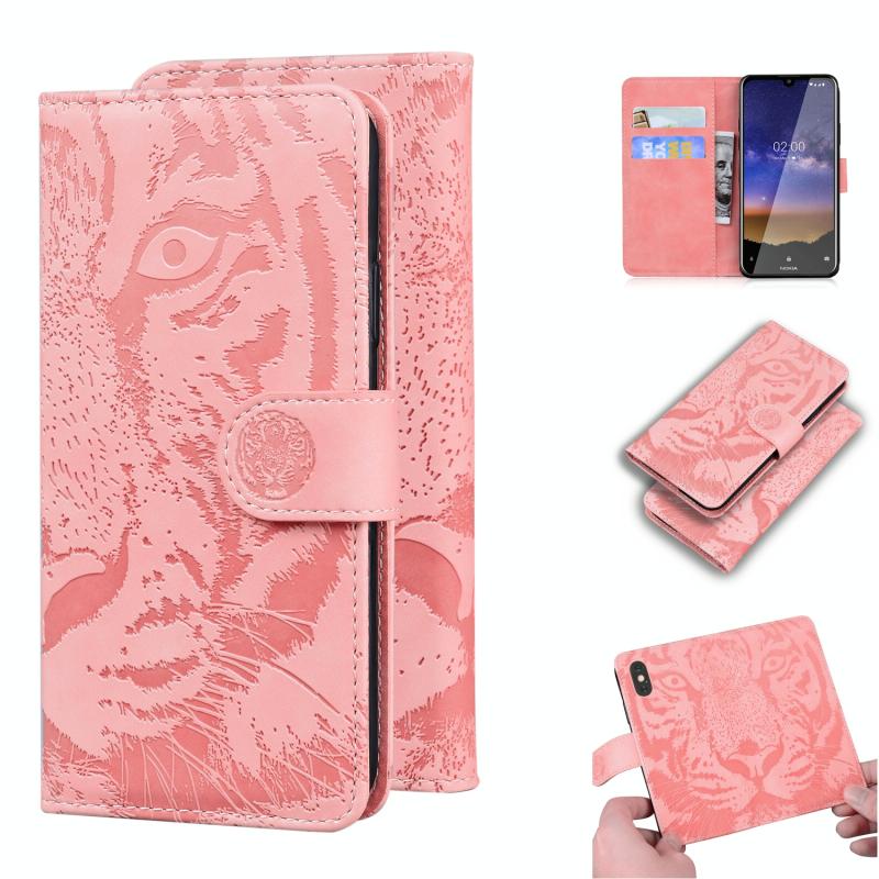 For Nokia 2.2 Tiger Embossing Pattern Horizontal Flip Leather Case with Holder & Card Slots & Wallet(Pink)