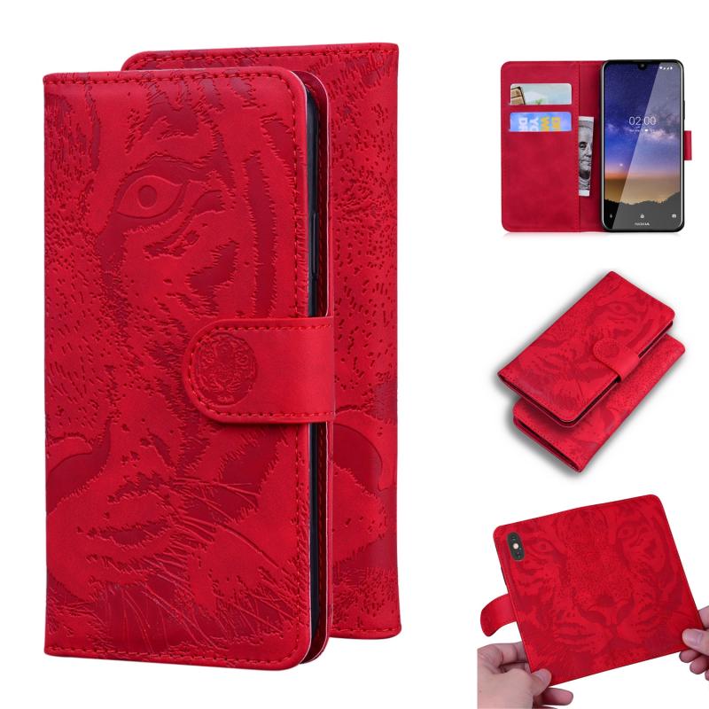 For Nokia 2.2 Tiger Embossing Pattern Horizontal Flip Leather Case with Holder & Card Slots & Wallet(Red)