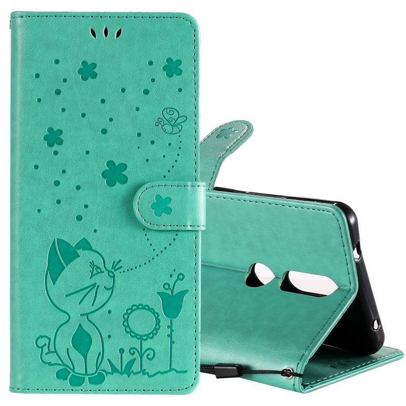 For Nokia 2.4 Cat Bee Embossing Pattern Shockproof Horizontal Flip Leather Case with Holder & Card Slots & Wallet(Green)