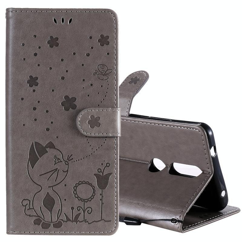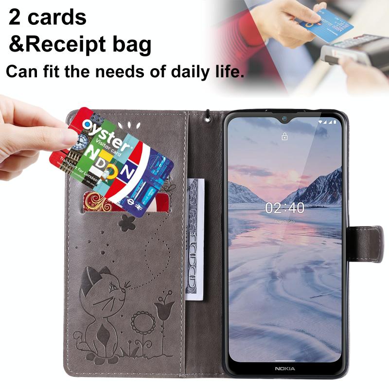 For Nokia 2.4 Cat Bee Embossing Pattern Shockproof Horizontal Flip Leather Case with Holder & Card Slots & Wallet(Grey)