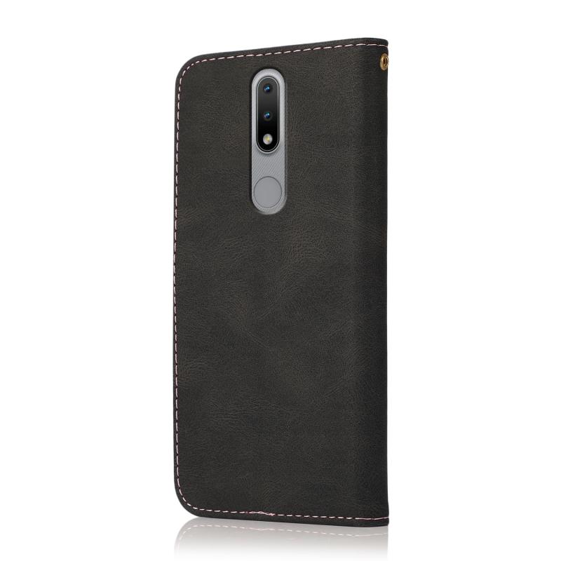 For Nokia 2.4 Dual-color Stitching Leather Phone Case(Black Rose Gold)
