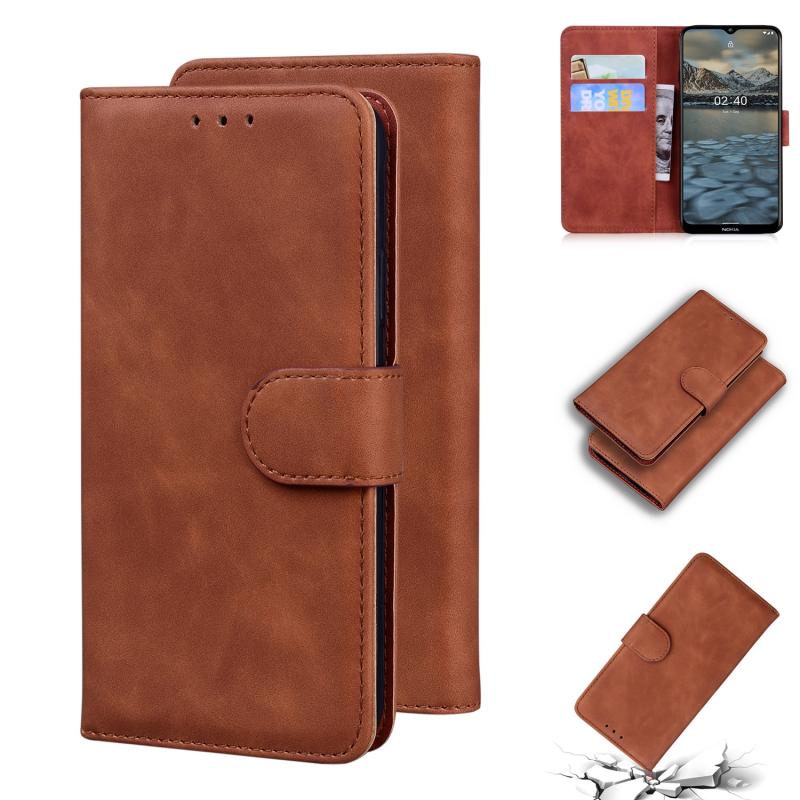 For Nokia 2.4 Skin Feel Pure Color Flip Leather Phone Case(Brown)