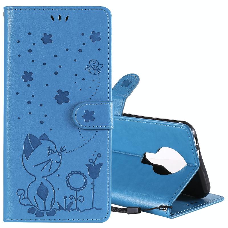 For Nokia 3.4 Cat Bee Embossing Pattern Shockproof Horizontal Flip Leather Case with Holder & Card Slots & Wallet(Blue)