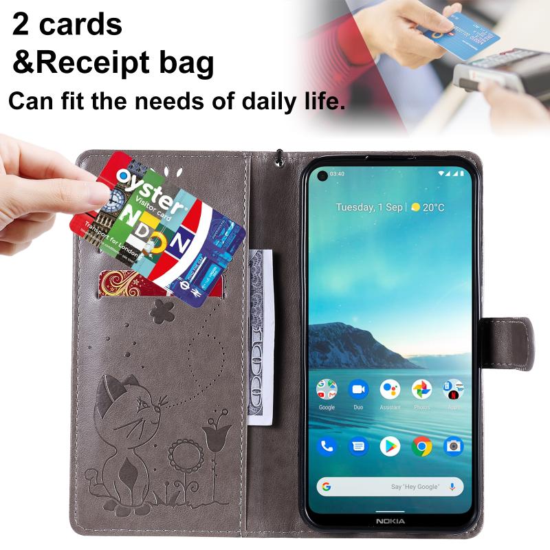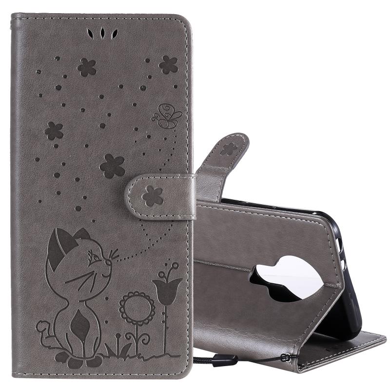 For Nokia 3.4 Cat Bee Embossing Pattern Shockproof Horizontal Flip Leather Case with Holder & Card Slots & Wallet(Grey)