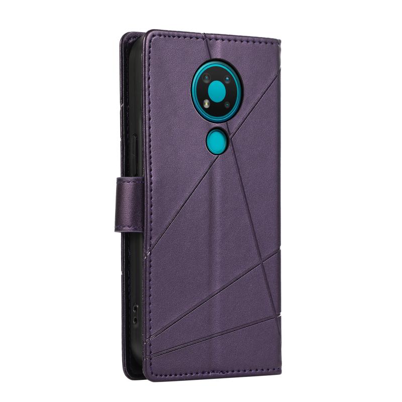 For Nokia 3.4 PU Genuine Leather Texture Embossed Line Phone Case(Purple)
