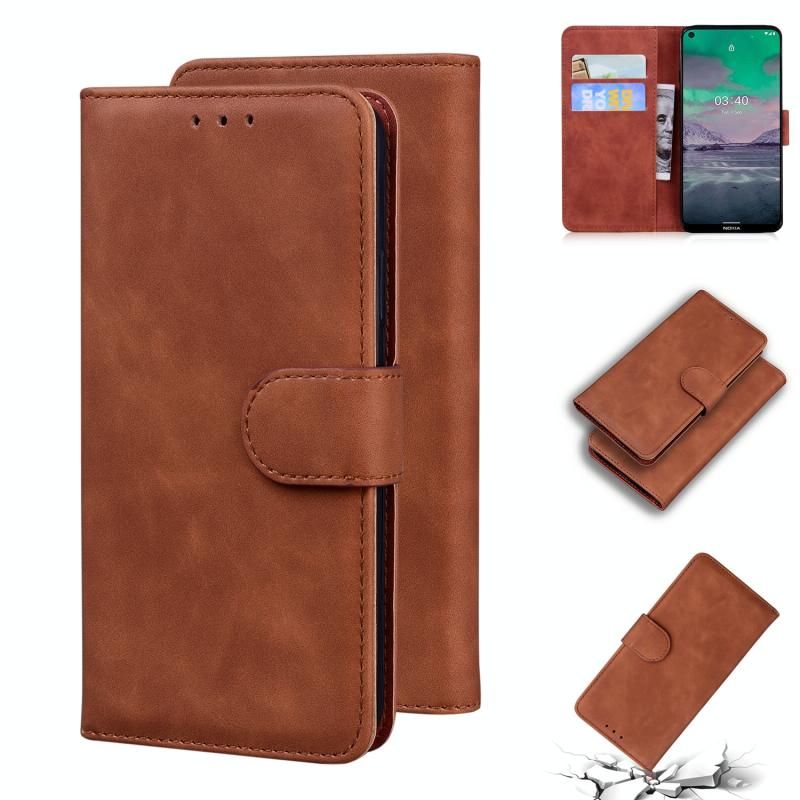 For Nokia 3.4 Skin Feel Pure Color Flip Leather Phone Case(Brown)