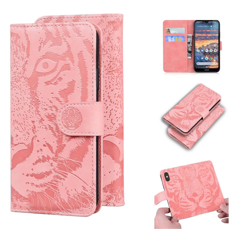 For Nokia 4.2 Tiger Embossing Pattern Horizontal Flip Leather Case with Holder & Card Slots & Wallet(Pink)