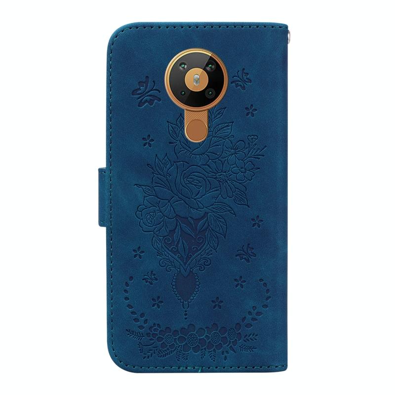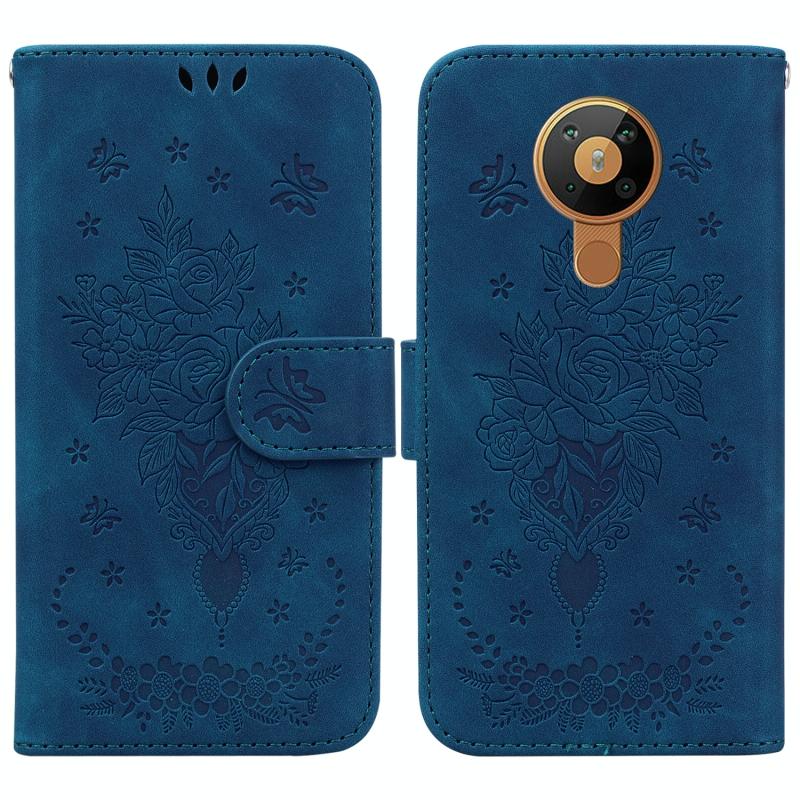 For Nokia 5.3 Butterfly Rose Embossed Leather Phone Case(Blue)