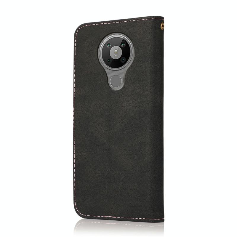 For Nokia 5.3 Dual-color Stitching Leather Phone Case(Black Rose Gold)