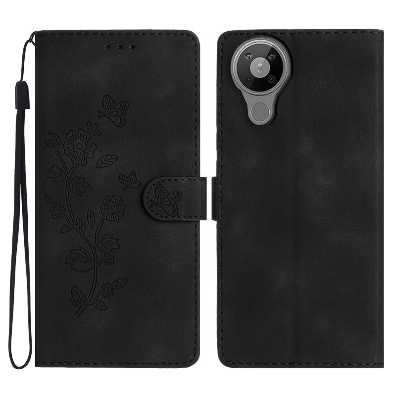For Nokia 5.3 Flower Butterfly Embossing Pattern Leather Phone Case(Black)