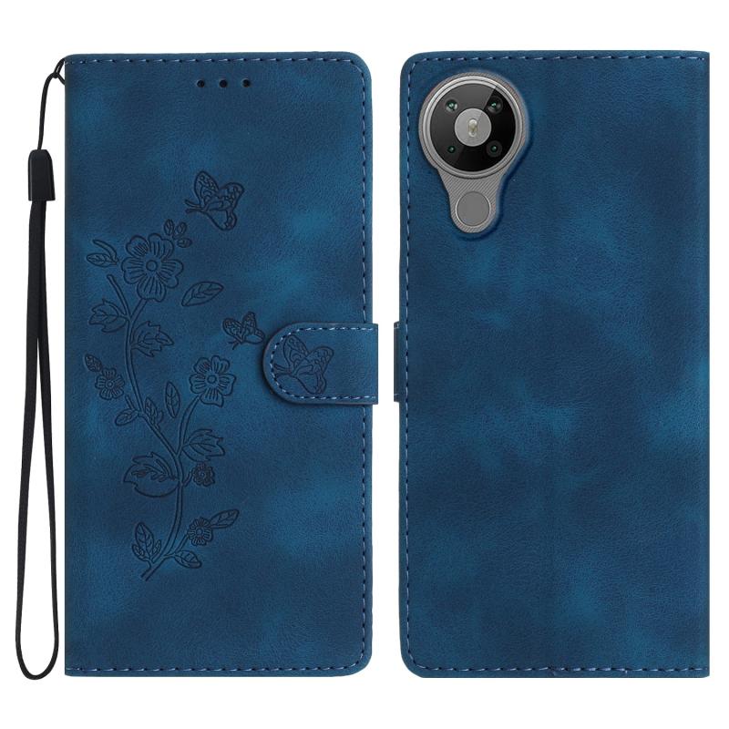 For Nokia 5.3 Flower Butterfly Embossing Pattern Leather Phone Case(Blue)
