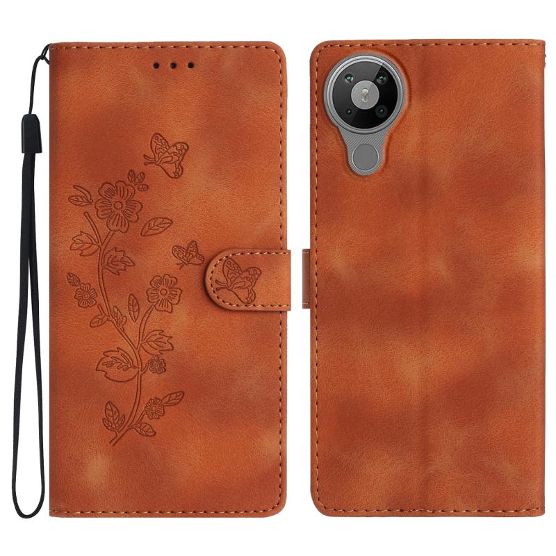 For Nokia 5.3 Flower Butterfly Embossing Pattern Leather Phone Case(Brown)