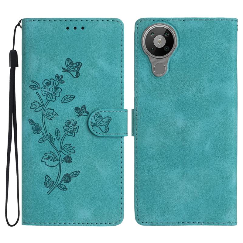 For Nokia 5.3 Flower Butterfly Embossing Pattern Leather Phone Case(Sky Blue)