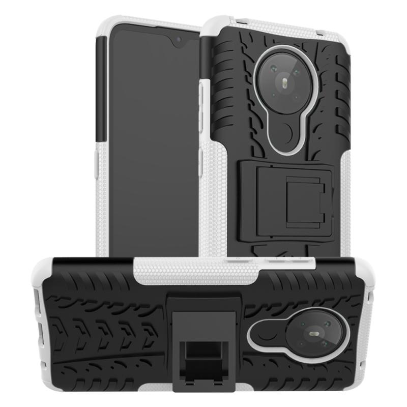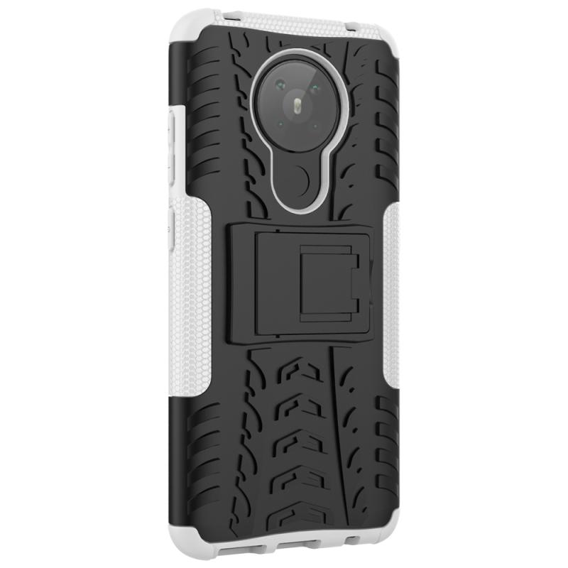 For Nokia 5.3 Tire Texture Shockproof TPU + PC Protective Case with Holder(White)