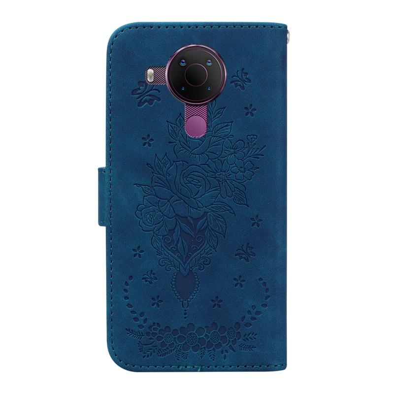 For Nokia 5.4 Butterfly Rose Embossed Leather Phone Case(Blue)
