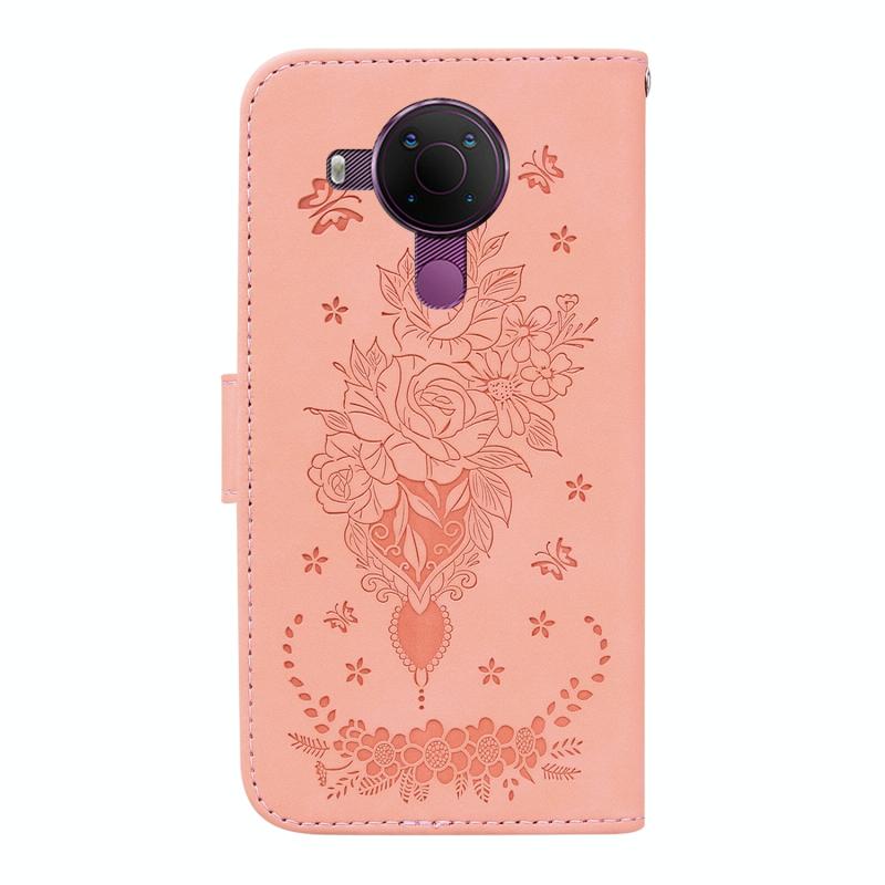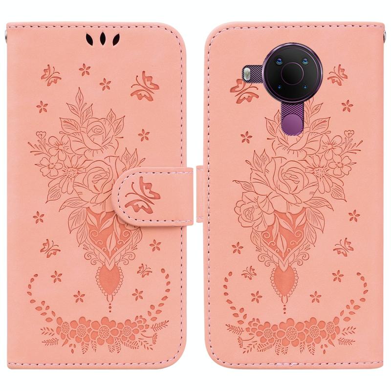 For Nokia 5.4 Butterfly Rose Embossed Leather Phone Case(Pink)