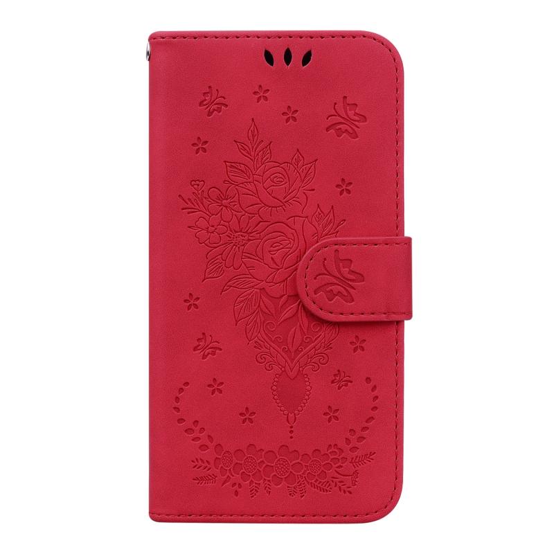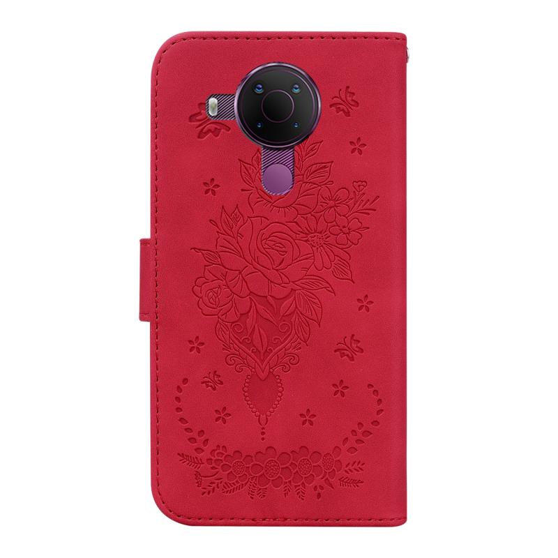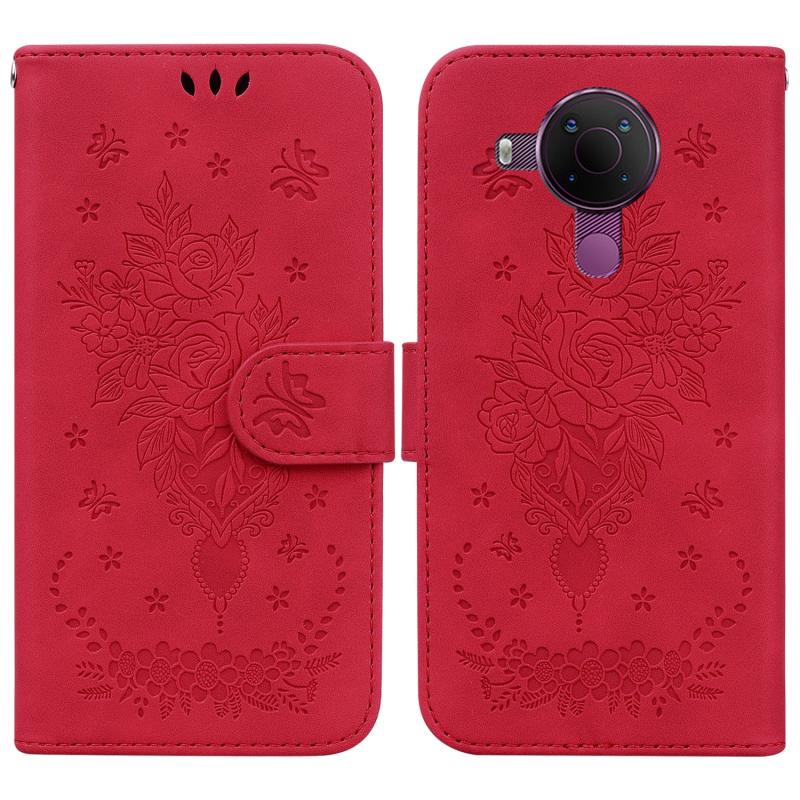 For Nokia 5.4 Butterfly Rose Embossed Leather Phone Case(Red)