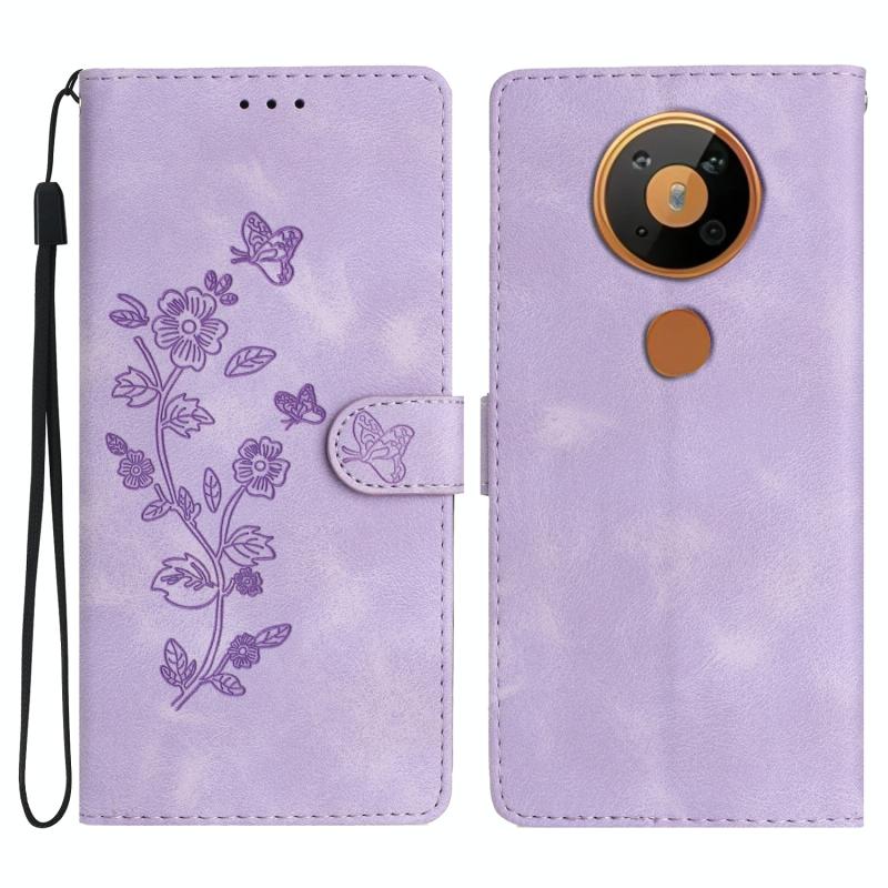 For Nokia 5.4 Flower Butterfly Embossing Pattern Leather Phone Case(Purple)
