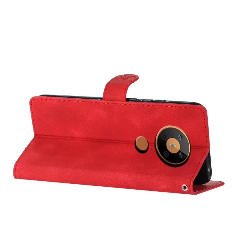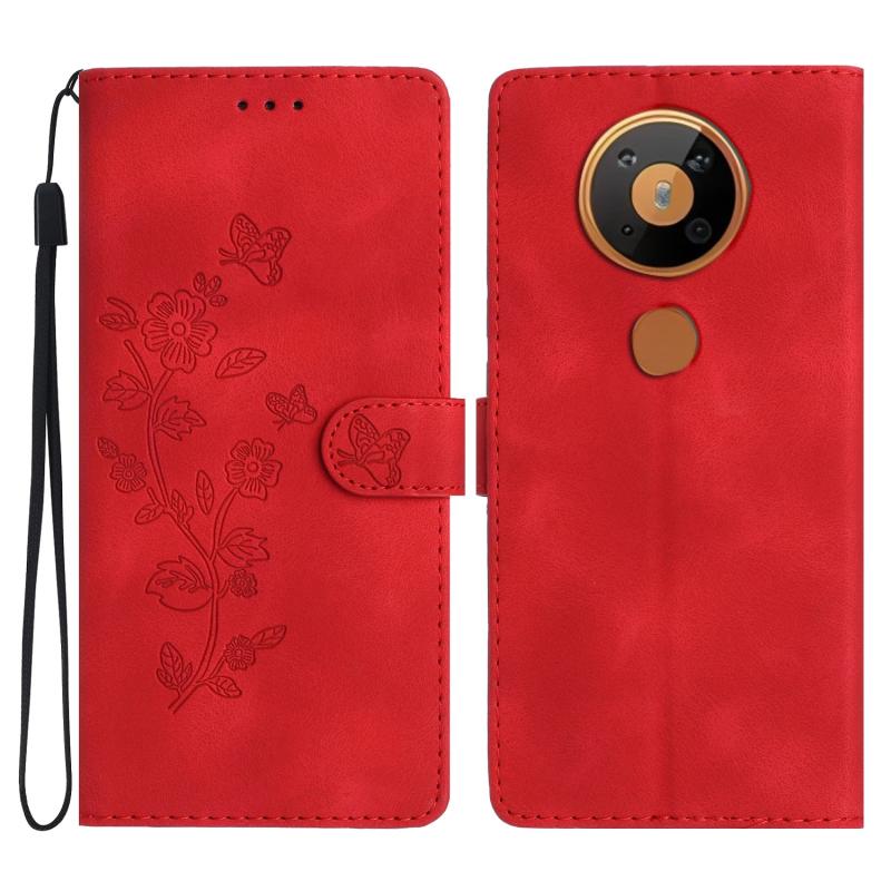 For Nokia 5.4 Flower Butterfly Embossing Pattern Leather Phone Case(Red)