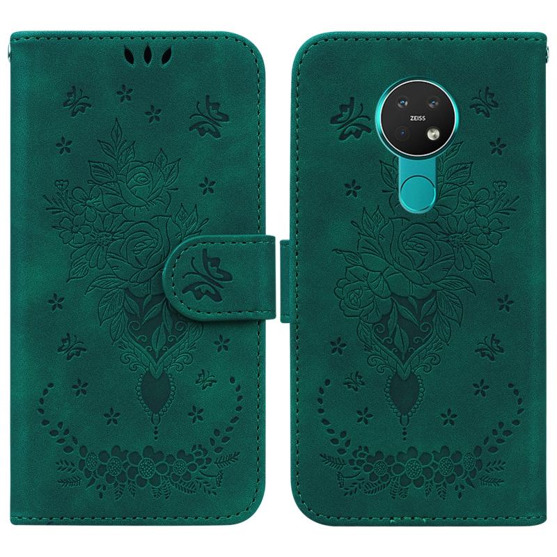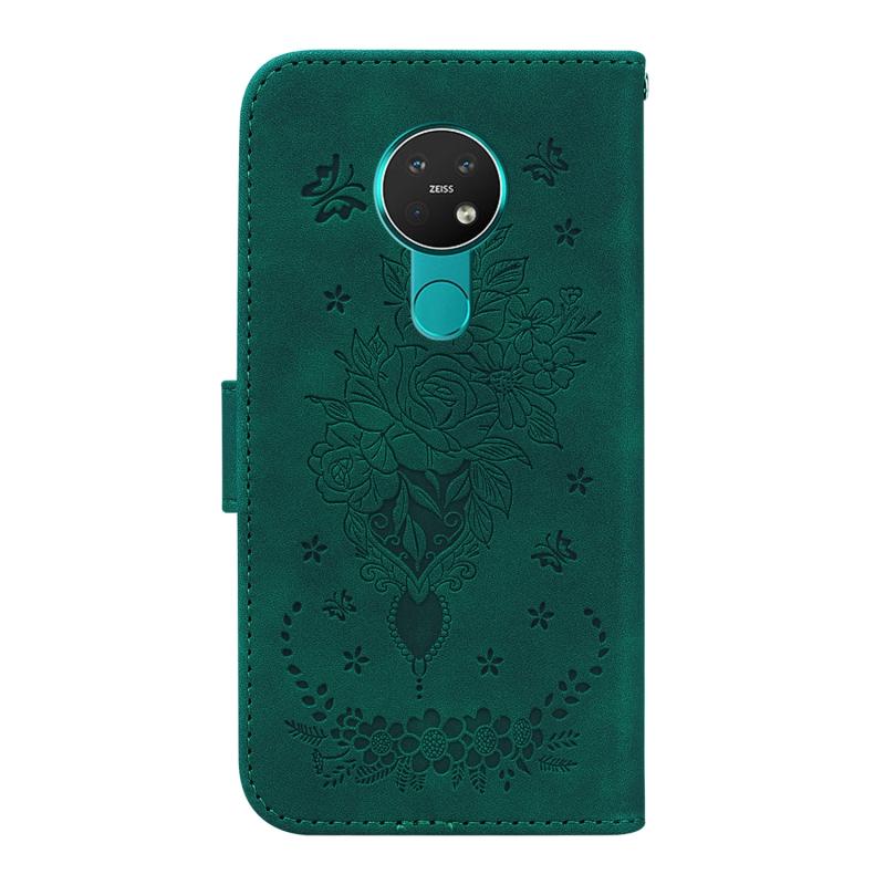 For Nokia 6.2 / 7.2 Butterfly Rose Embossed Leather Phone Case(Green)